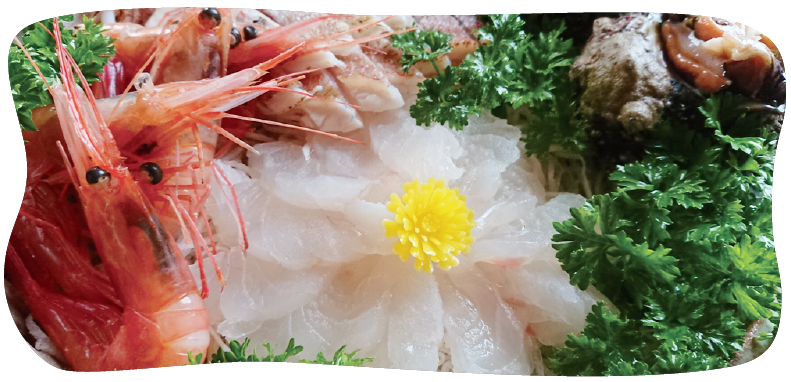 近くの漁港で水揚げされた新鮮な魚貝類を使用しております。透き通るようなお刺身など、鮮度の良い海鮮料理をお召し上がりください。また、お米や野菜は自家製のものを使用しており、細かい部分にも気を配っております。
