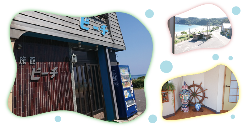 民宿旅館ビーチ(Beach)は、竹野浜の目の前に位置しており、入口・お食事処・お部屋の至るところから、絶景の竹野浜を眺めることができます♪